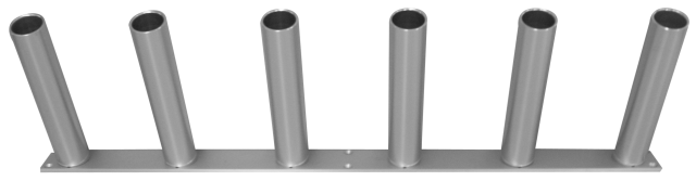 Our angled stationary storage rack is built from solid aluminum and anodized to military specs.  This unit works great for storing rods and fits well on hardtops.  Tubes are threaded and are capable of being screwed on and off for storage purposes; color upgrades to Bright Gold, Blue and Black are available.