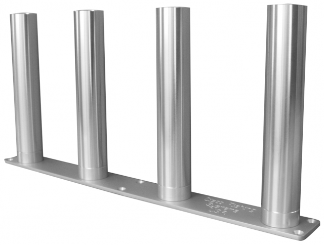 Our vertical 90° stationary storage rack is built from solid aluminum and anodized to military specs. This unit works great for storing rods and fits well on hardtops. The dimensions of this unit are 64-1/4" in length and 2" in width. Tubes are threaded and are capable of being screwed on and off for storage purposes; color upgrades to Bright Gold, Blue and Black are available.