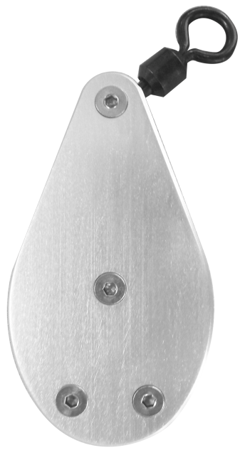The sheave is recessed to prevent the line from being captured between the side plate and sheave. The 12/0 swivel is rated by the manufacturer at 1500 lbs (this swivel is constructed in the USA).