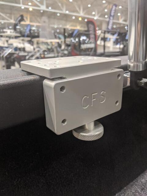 By capturing the underside and top of the gunnel with our machined bracket we are able to attach these brackets to the Voyaguer, Escape, Competitor, Classic and Trophy models. This bracket comes with pre-drilled 1/4-20 holes that will attach our double/triple/quad cross plates to them as well as our various downrigger adapter plates. Cisco, Scotty, Cabela and Folbe rod mounts will also mate with the hole patterns included on the mount. These mounts can also be bridged with a our Sure-Stop Tracks to securley mount downriggers and vertical trees without flexing the gunnel.