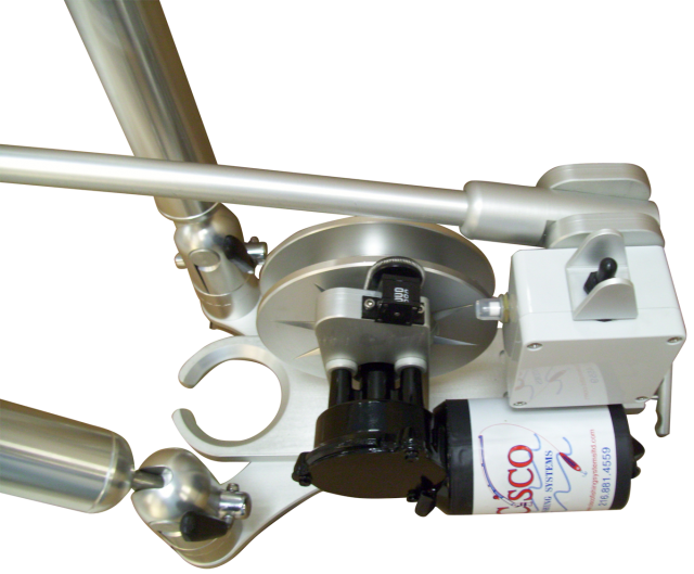 In addition to the radial movement, the tube will adjust to any angle from 0-90° by actuating the padded lever. The lever can be rotated in any direction to meet the needs of each user. In the bottom of each tube is a machined extension mates with the cross cut in the rod handle butt to keep the rod from swaying.