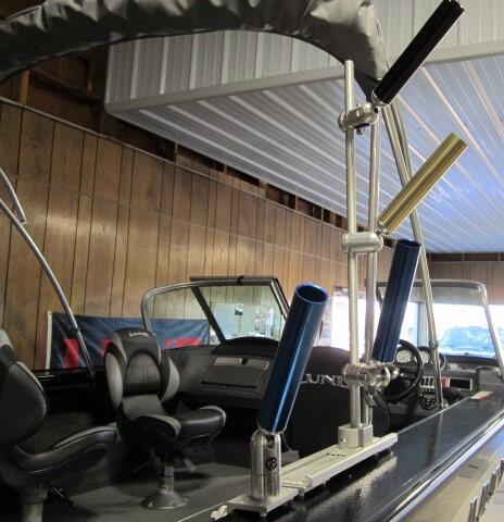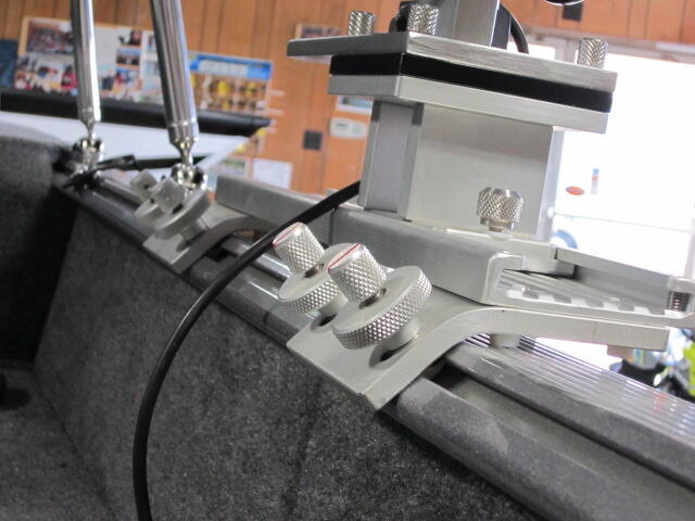 Any of your new or existing track mounted equipment will slide into the Sure-Stop track.  This makes securing or removing equipment from your boat easy and quick.  If preferred this system stay secured to the boat and your cover will still easily fit over the mounts.