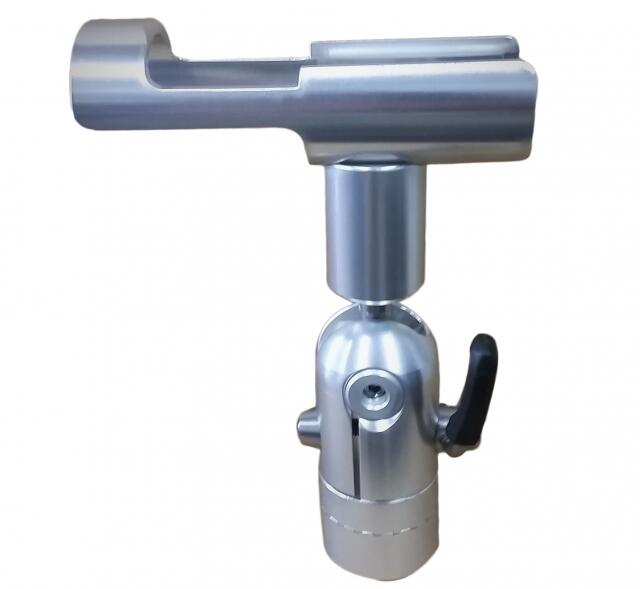 In addition to the radial movement, the cradle will adjust to any angle from 0-135° by actuating the padded lever. The lever can be rotated in any direction to meet the needs of each user. No tools are required for positioning of the rod holder. All aluminum components are anodized to military specs.