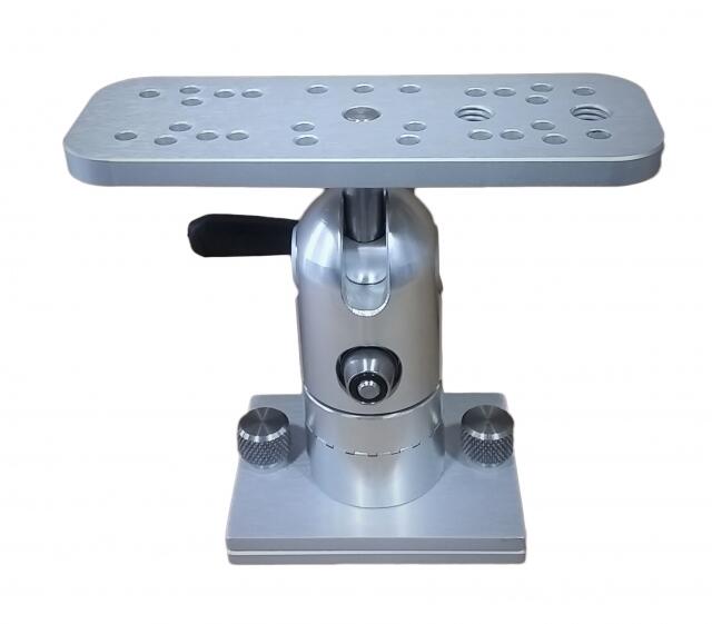 The base dimensions of this unit is 3" wide x 4" long and will ship out as a removable thumbscrew mount (track mount and permanent mounting applications also included) The overall height of this unit is 6" tall when the top plate is positioned at it highest point and 4" tall when it is positioned at is lowest point. The top plate is 7" wide and offers a wide variety of mounting holes for the most popular units available.