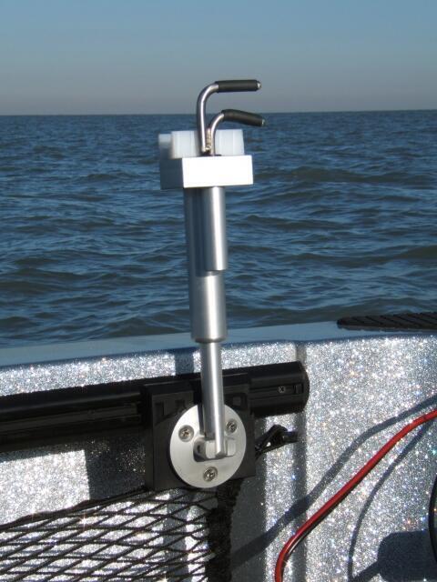 Rail mounting options are also available for use on handrails. Our thumbscrew rail mount can adapt to fit this stabilizer making it easily removable. This is available with measurements as slim as 5.5" between the top of the hand rail and the bottom of the trolling motor arm. Feel free to contact us about this option. Thank you.